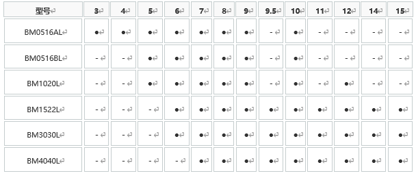 下表里记载轴孔径的产品可立即交货。