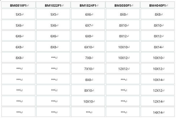 3.标准库存品轴孔径(d1,d2)的组合
