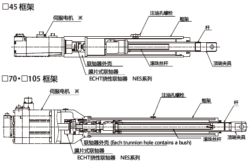 采用本公司ECHT绕性联轴器 NES系列产品。具有行业中最高等级的轻量性和高刚性,可充分发挥伺服电机的性能。