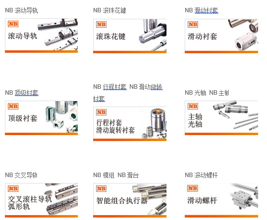 专业销售NB滚动滑轨,NB滚珠花键,NB滑动村套,NB轴承,NB行程村套,NB光轴,NB顶级村套,NB交叉导轨,NB模组,NB滑动螺杆